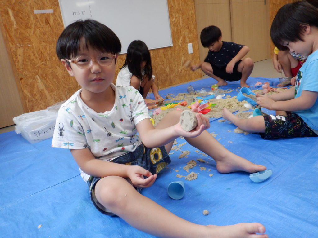 それに加えて、リズム遊び・小麦粉粘土遊び・水遊び・トランポリンなどの感覚を育てる活動や、息を上手く吐くことで、発音が上手くできるようになることにとても有用なシャボン玉遊びなども行っています。