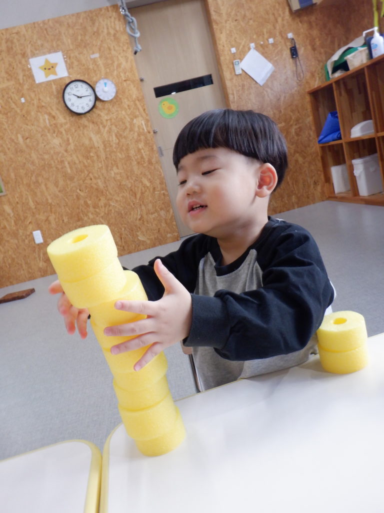 このような活動の中で、職員の支援を受けながら、元気一杯・明るい表情で活動室の中を駆け巡り、きぼう学舎での活動を楽しんでくれています。