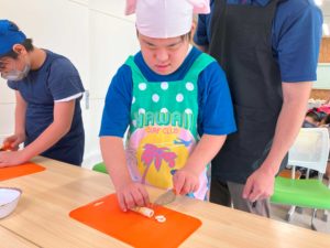 お好み焼きの具材を切る班とおにぎりを作る班に分かれて準備をしました!