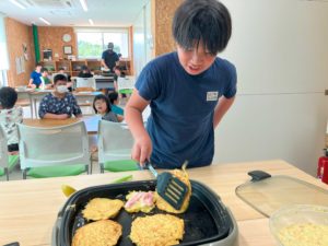 昼食づくりで”お好み焼き”を作りました!