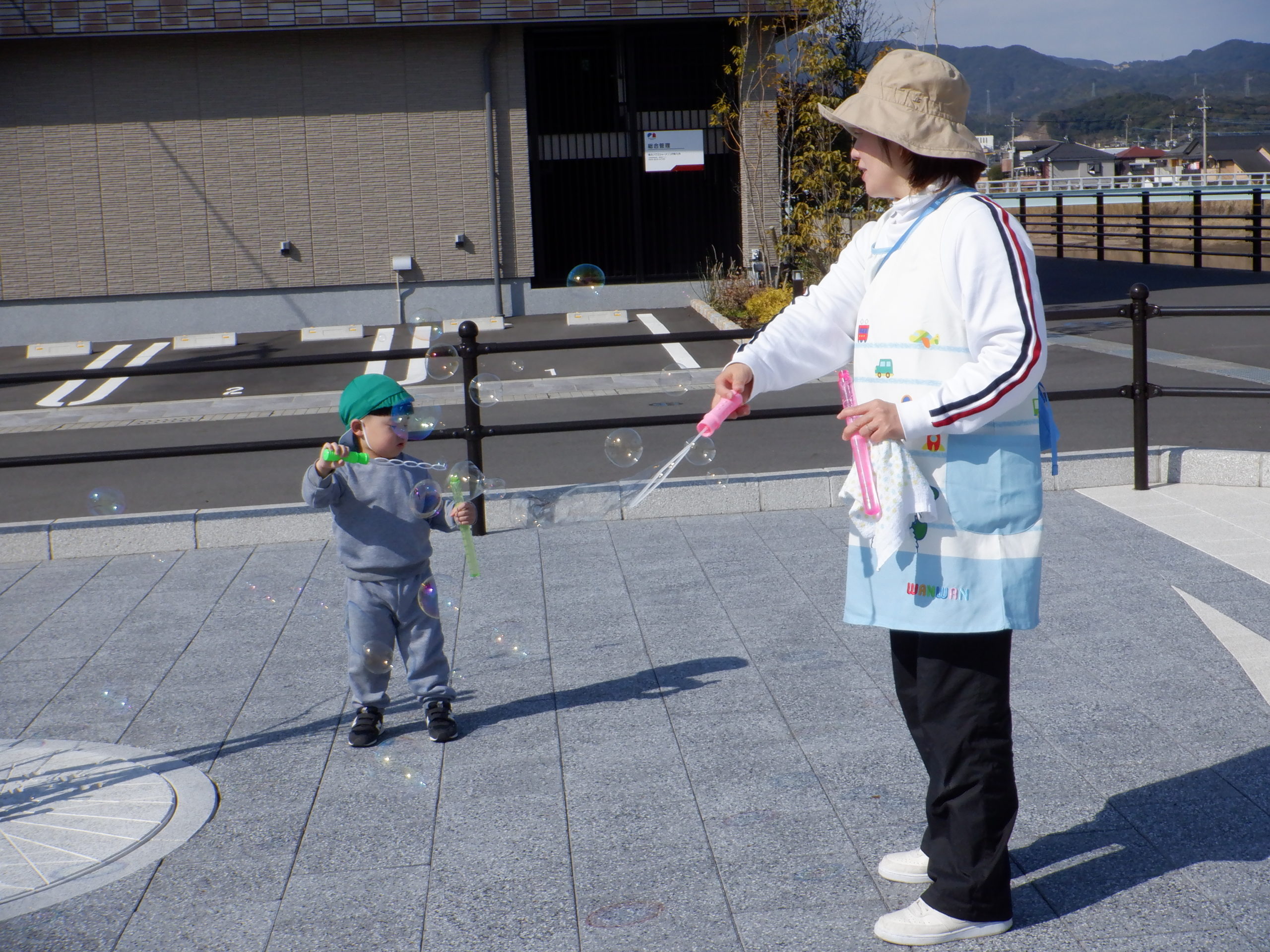 遠くまで飛んでいくシャボン玉を追いかけたり