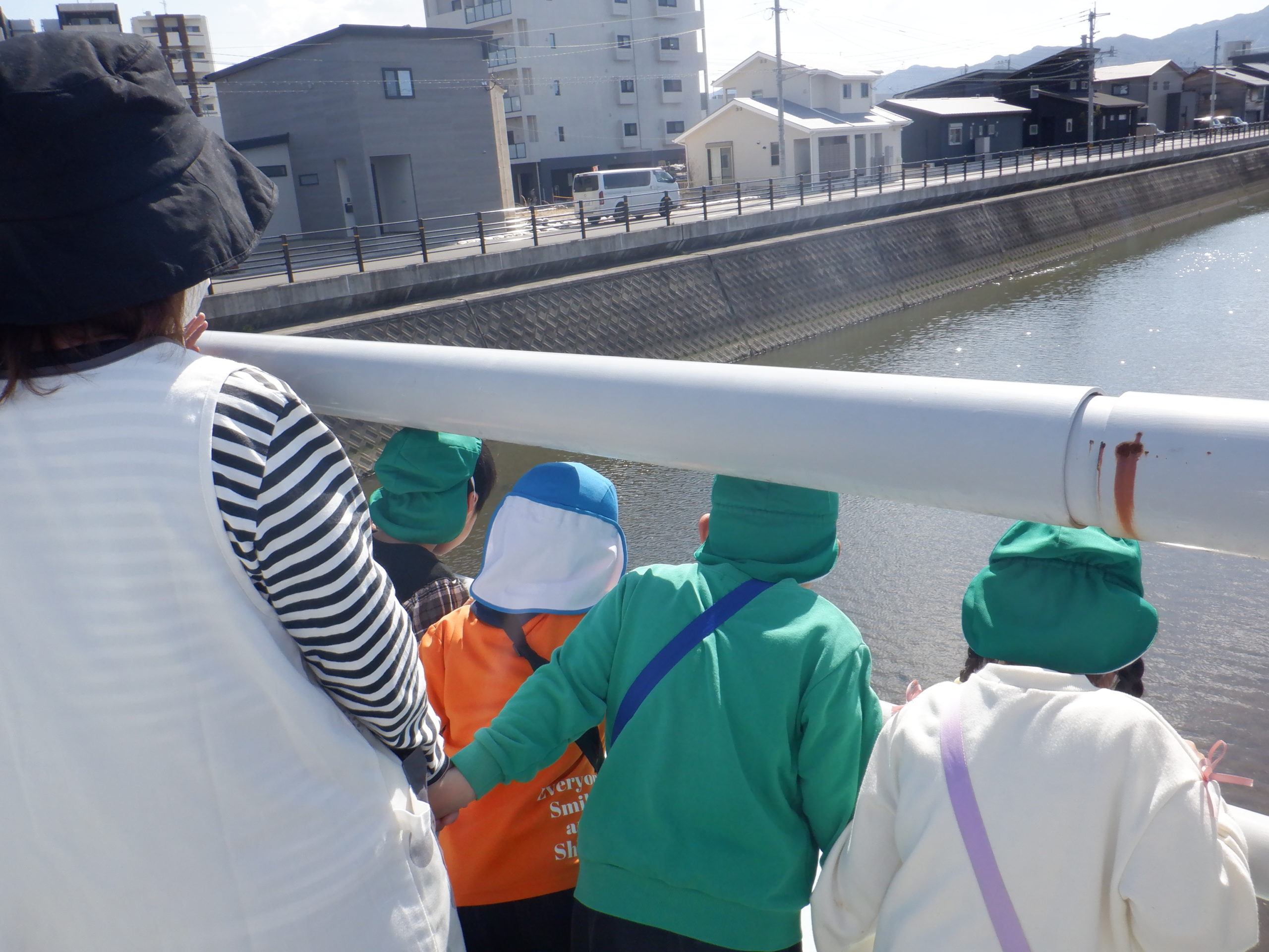 「三匹いる!」「こっちにもいるよ!」「あ!橋の下に行っちゃった!」
