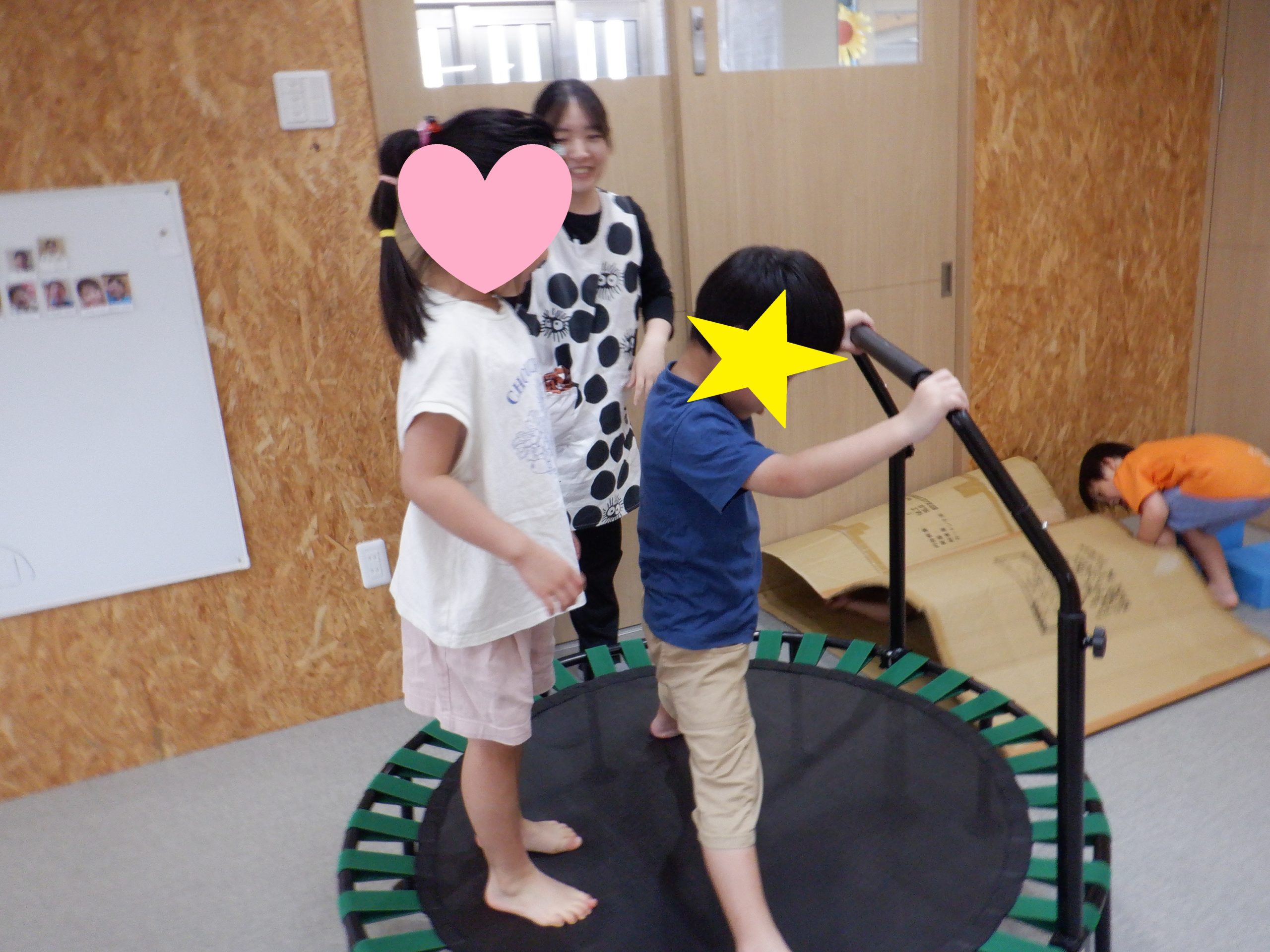 トランポリンでお友だちと一緒に跳びはねたり…