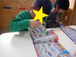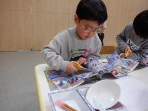 冊子のため、切り始めの場所に戸惑う子どもたち…