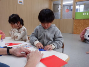 活動自体が2回目ですでにCDコマを作っていたお友だちは、今回は少し難易度の高い折り紙コマに挑戦しました‼️