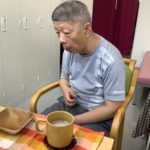 くつろぎカフェへの招待チケットを支援員に手渡し、お菓子とジュースを美味しそうに召し上がっていました🫖