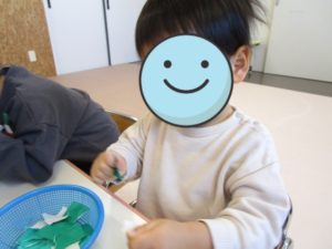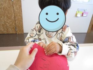 午後のお友だちは、サンタさんの靴下作りに取り組み、その中で毛糸通しに挑戦しました!