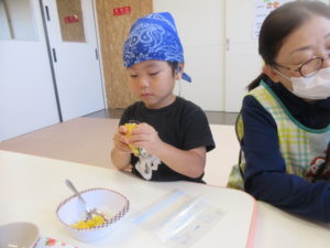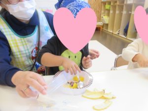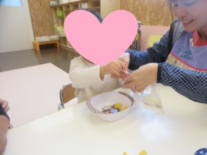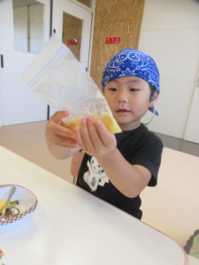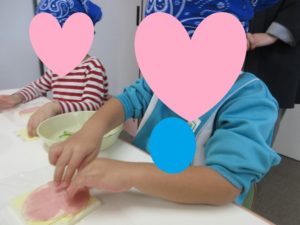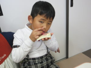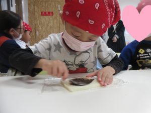 包丁で切ったり、チョコを塗ったり、具材を並べたりしました!