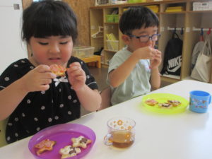 クッキングで、七夕にちなんだ星のピザを作って食べました!