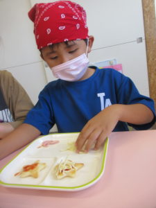 クッキングで、七夕にちなんだ星のピザを作って食べました!