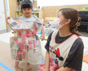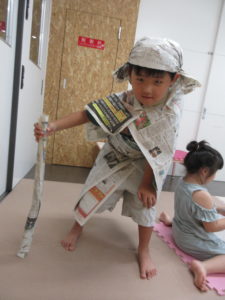 新聞紙を使って、服や剣など、好きなものを作りました😊💕