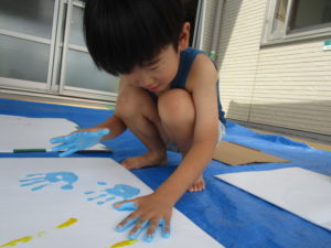 全身で絵の具の感覚に親しみました(*^▽^*)