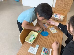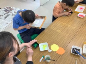 夏には夏らしい物を作ろう!ということで、わくわくでは、夏の壁面制作に取り組みました。