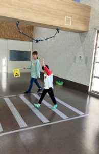 今回は“横断歩道の渡り方”をテーマに、動画学習や実際に横断歩道を渡る練習をしました。