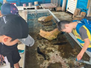 ナマコを触ったり、タツノオトシゴを見たりしました。