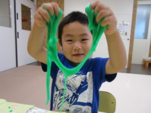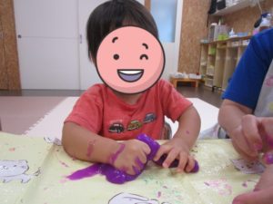 ギュッギュと握ったり、上から垂らしたりなど両手で感触に親しんでいました!