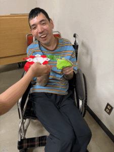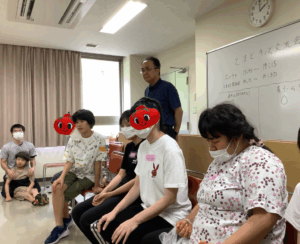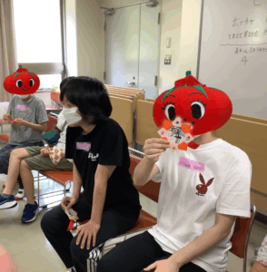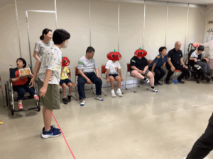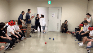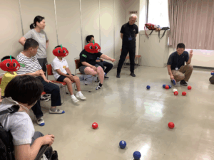 『とまと』と『キッズステーション星ヶ峯』の利用者さん混合チームでボッチャをした後、
