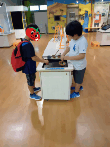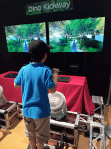 新しくできた恐竜をテーマにした展示コーナーにも大きな興味を示し、夢中になって体験していました。