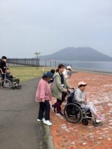 海の向こうには桜島がとてもきれいに見え、ゆったりとした景色の中で心がほぐれる時間となりました。