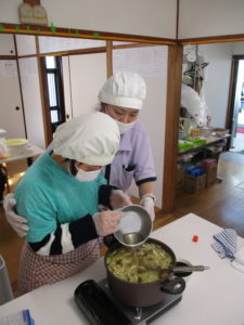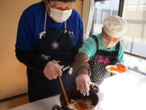 和気あいあいとした雰囲気の中で、一人ひとりが自分の担当メニューを調理して、楽しみました♪