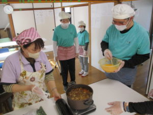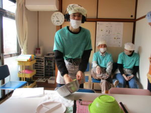 前日から利用者さんと一緒にニシムタで材料購入から行い、皆さんやる気満々。