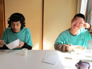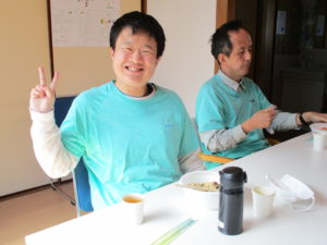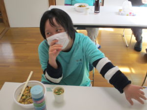 食事風景~。皆さん嬉しそうに食べ、残食もなし!