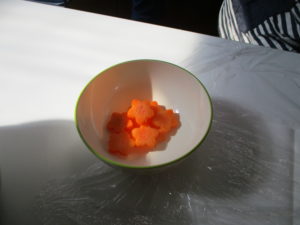 人参の型抜き、卵割りの様子などなど。