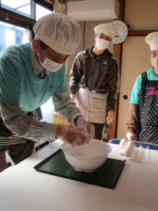 材料の下ごしらえ。皆さん、とても上手でした~。