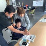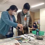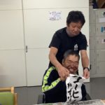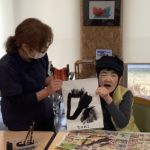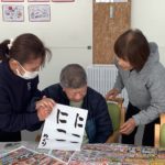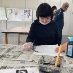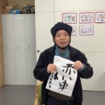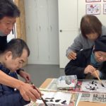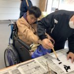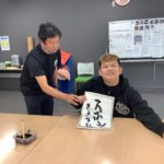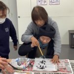 「にこにこ」と書かれた方や、自分の好きなものを書いた方、皆さま思い思いの言葉を筆を使って力強く書きました。
